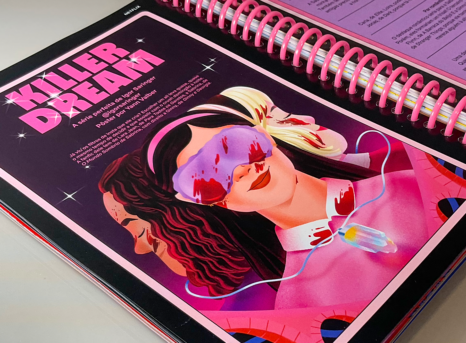 A ilustração retrata três personagens de séries da Netflix, escolhidas pelo influenciador Igor Saringer.