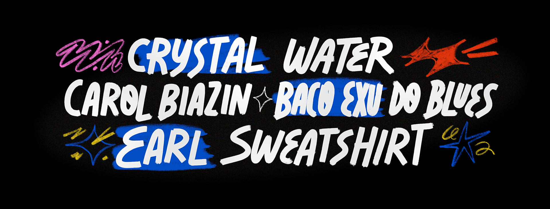 Busquei inspiração em cartazes de festivais, explorando a combinação entre ilustração e lettering para criar uma composição vibrante e dinâmica.