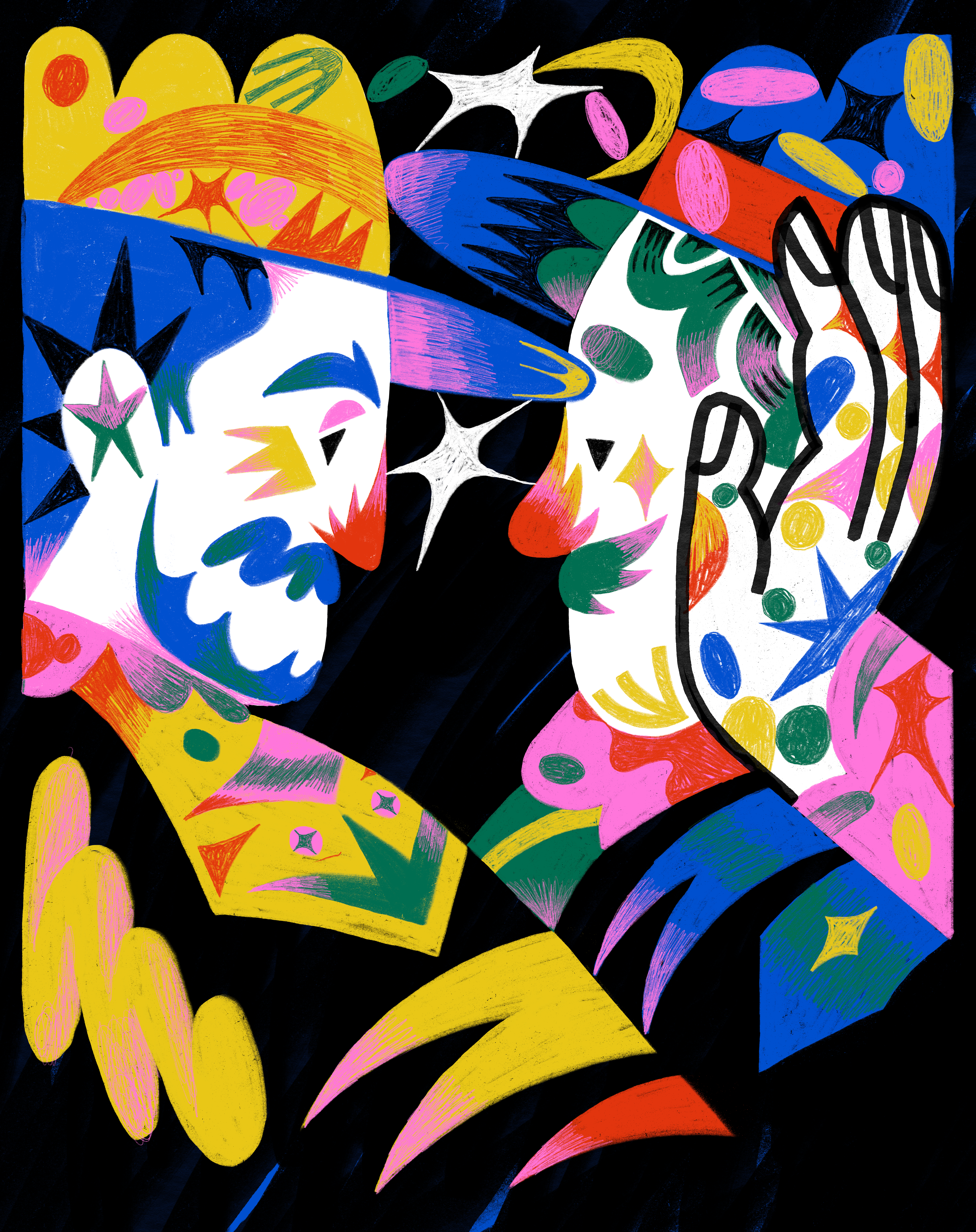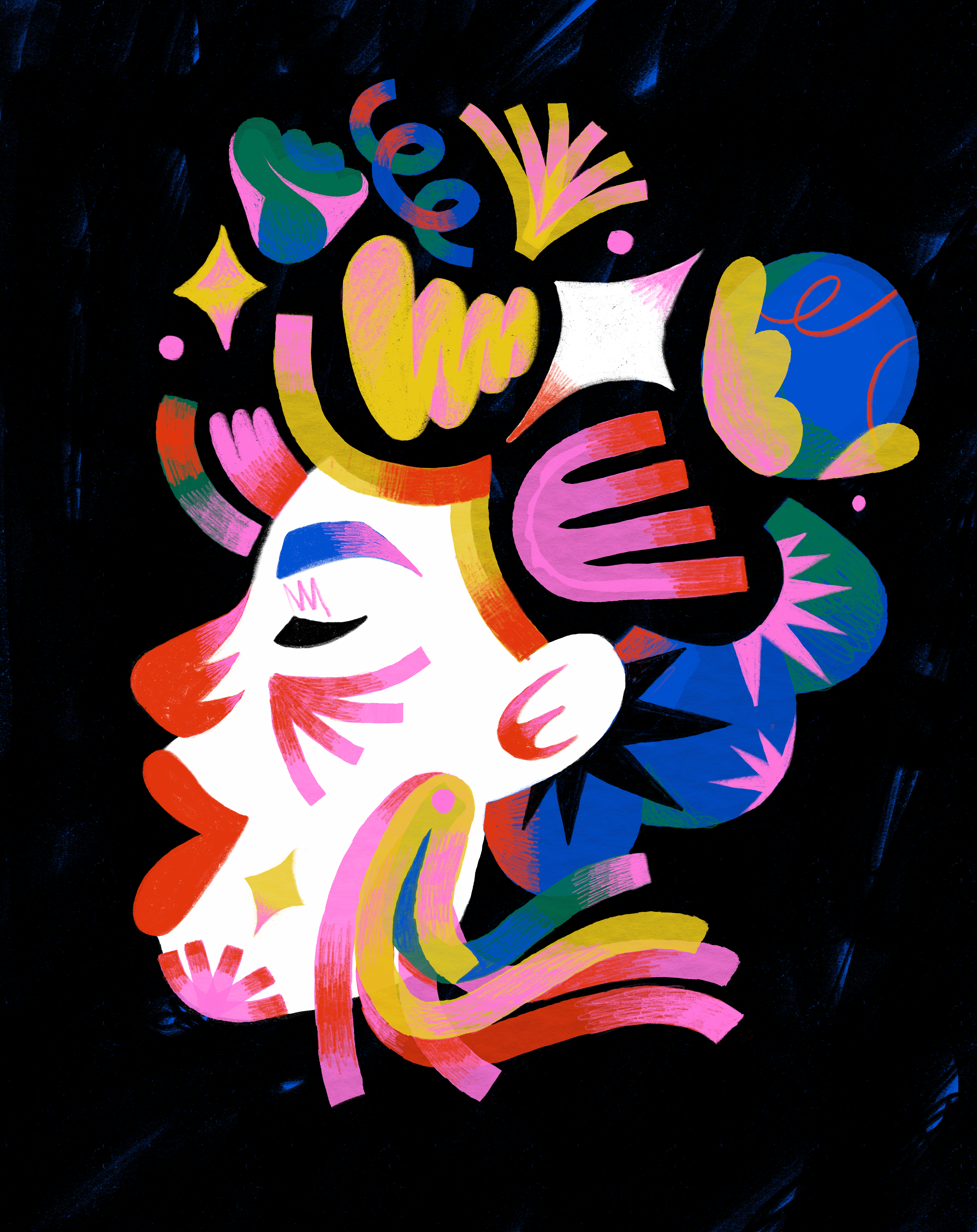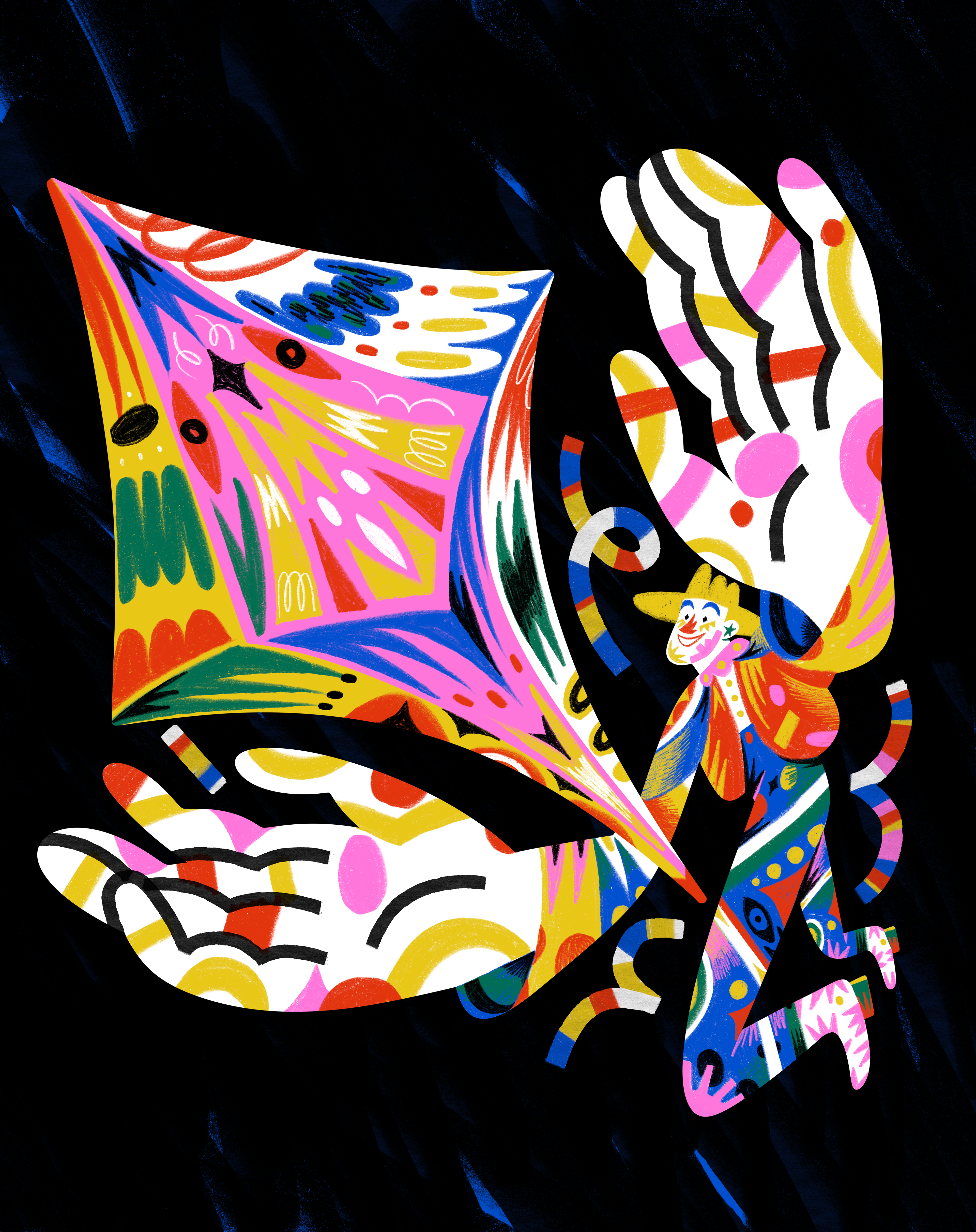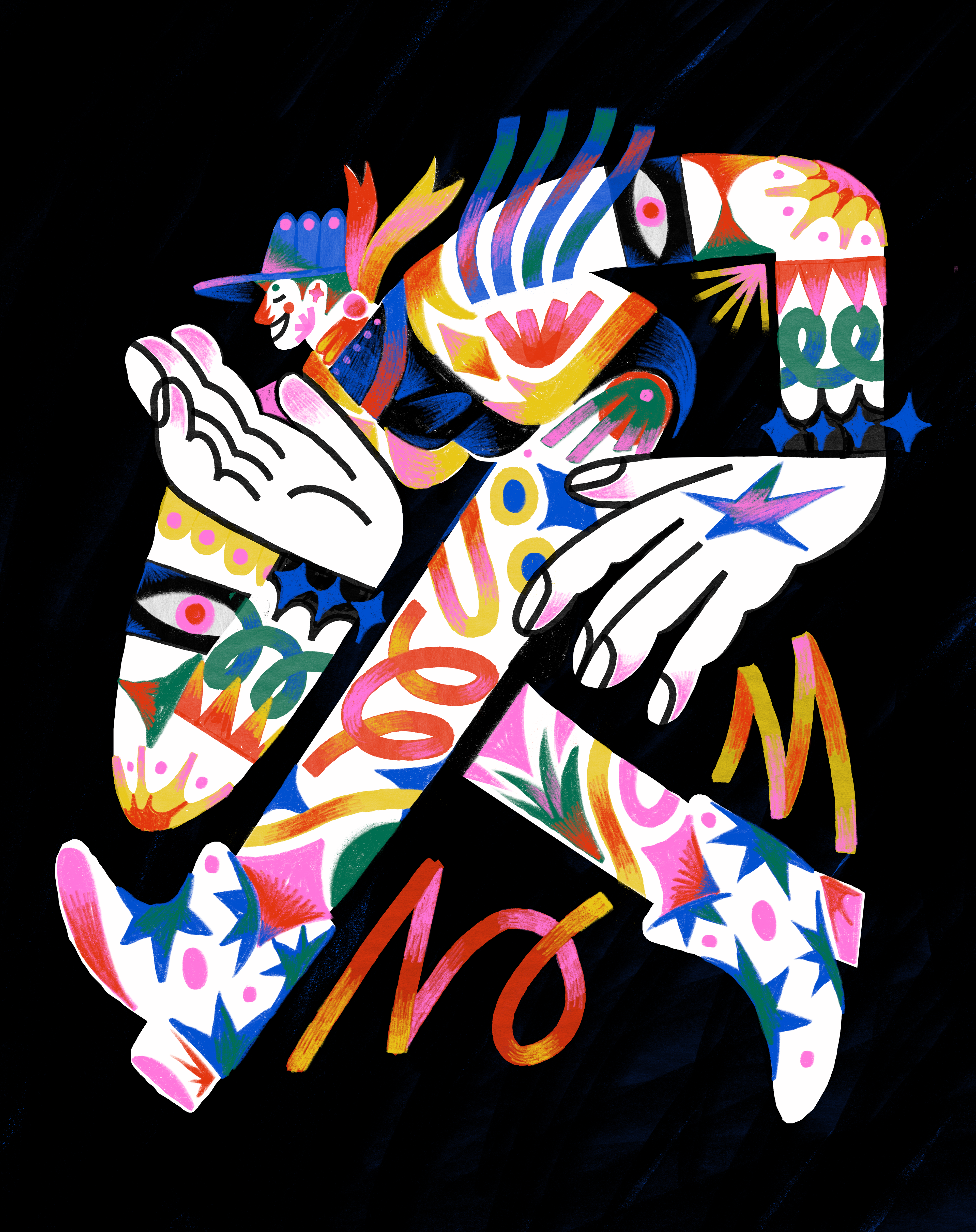 The colors of this project come from a palette that I already use and that is frequent in my work, but applied on a dark background to reflect the nighttime, the magical moment of this time of year when the bonfires are lit.