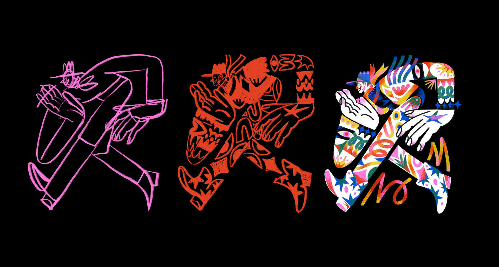 As texturas são inspiradas em processos físicos como rabiscos de lápis e marcadores e inspiradas em Xilogravuras.